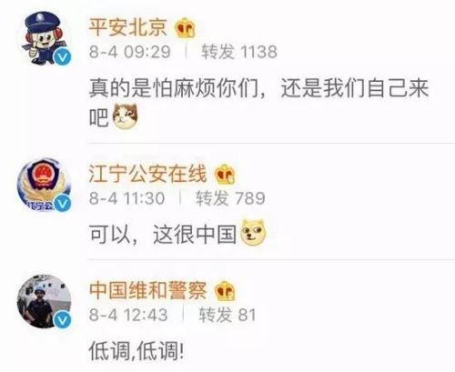 小新把这个视频发到微博上,祖国的警察叔叔们分别转发来表态: